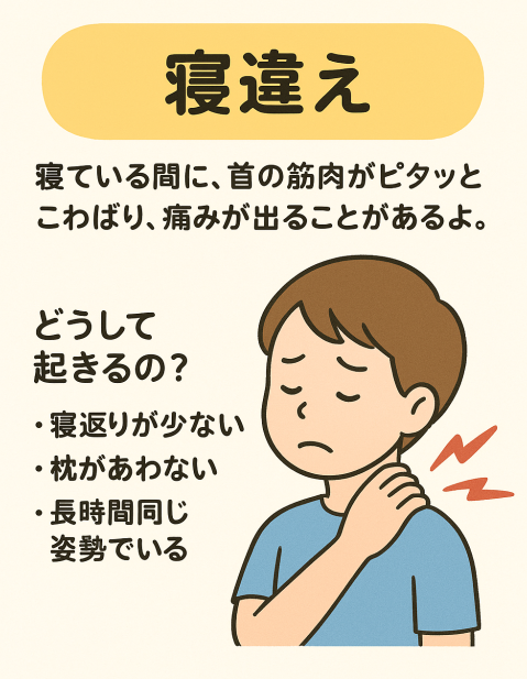 とくに寝ている姿勢が悪い場合には、首に余計な負荷がかかり、痛みやコリの原因となることがあります。