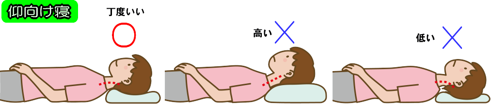 仰向けや横向きで、首がまっすぐになる姿勢の方が「首コリ・首痛」の場合は、適しています。