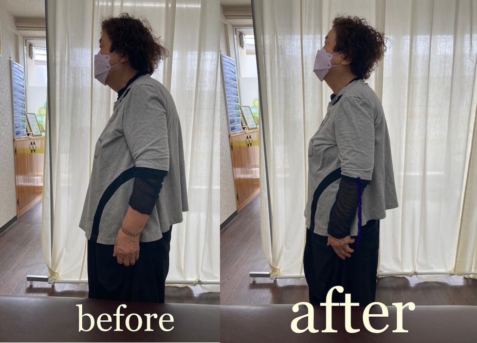 姿勢矯正をすると背中がのびて、肩の動きもスムーズになります。
