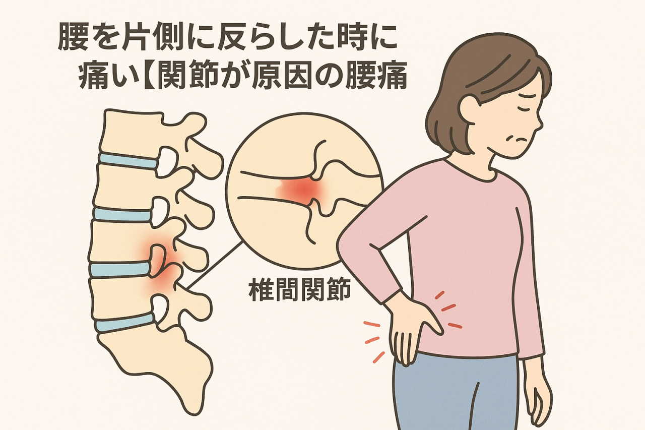 腰を後ろに反らしたり、体をひねったときに「片側の腰がズキッと痛む」という方は、背骨の関節が原因になっている可能性があります。